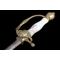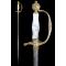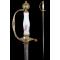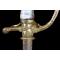 Ce type d'épée est caractéristique du rococo allemand : monture en laiton ciselé avec des fleurs et des cartouches rocaille avec un anneau latérial. Plus précisément, ces épées sont équipées d'une poignée en porcelaine et d'une lame à section plate particulièrement courte par rapport au autres épées de cour contemporaines. Cette petite taille et le matériau de la poignée pourraient suggérer qu'il s'agissent d'une mode d'épée pour page, possiblement fabriquées en Saxe, bien qu'il soit difficile de le prouver. Un autre exemplaire est documenté avec le monograme "CT" sur la lame, pour Karl Philipp Theodor, Prince électeur, Comte palatin et Duc de Bavière (1724-1799). On peut également noter un exemplaire en argent conservé au MET museum qui diffère par plusieurs aspects et fabriqué à Amsterdam par Jan Nieuwland (entre 1747-1807). Bon état.