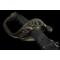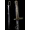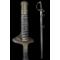 Monture. Monture en laiton à poignée en corne. Elle est composée d'une calotte, d'une branche cassée et d'une garde à branche latérale et un quillon. La calotte est décorée d'une fleur et de branches de laurier, les branches de la garde le sont également avec des fleurs et des volutes entre les branches latérales. L'ensemble des ciselures est usé. La poignée en corne a perdu son filigrane. Cravate en cuir absente. Mauvais état.