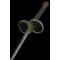 Monture. Monture de fleuret à poignée en bois avec un cordage et couverte de cuir noir. Pommeau en acier en cône, deux viroles entourant la poignée, garde en "8" en acier doublée d'une pièce de cuir adoptant la même forme et teinte en noir à l'avant. Etat correct.