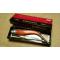 Plaquettes en stamina rouge (bois renforcé de résine, avantages : combine l'esthétique du bois naturel avec une résistance élevée à l'humidité, à la chaleur et aux chocs, garde toujours sa teinte flambant-neuve)