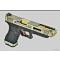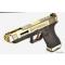 Le canon fileté en aluminium permet le montage d'adaptateurs dédiés. PIÈCES PERSONNALISÉES INSTALLÉES : SLIDE en métal léger avec un design en écailles de poisson. Corps inférieur en polymère avec finition antidérapante. Canon extérieur en acier forgé. Viseurs luminuos fluorescents. Déclencheur de type IPSC. Magwell en métal. DANS LA BOITE: G34 FORCE blowback (SLIDER ARGENT / canon OR ).