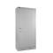 - Porte en tôle d’acier d’épaisseur 3 mm. avec des panneaux cachant les dispositifs de fermeture et avec bord anti-déchirure sur toute la hauteur.