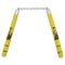 Nunchaku en bois peint en jaune avec motif personnage noir, chaine en acier.