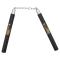 Nunchaku d'entrainement avec manches en plastique recouvert de caoutchouc noir, motif personnage doré, chaine en acier.