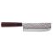 Le couteau Nakiri SekiRyu SRH200 se distingue par sa lame de 165 mm, conçue pour trancher et émincer avec précision. L'acier X50CrMoV15, utilisé pour la fabrication de la lame, assure une résistance à la corrosion et une durabilité accrue. La finition martelée de la lame réduit l'adhérence des aliments, facilitant ainsi la coupe. Le manche en bois teinté offre une prise en main confortable et sécurisée, tandis que son profil de lame de type couperet est idéal pour les tâches de découpe en cuisine. L'émouture symétrique garantit un tranchant lisse et efficace, adapté aux besoins des chefs professionnels et amateurs.