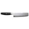 Le couteau Nakiri Yaxell Ketu, doté d'une lame en acier San Maï de 165 mm, excelle dans la découpe précise des légumes. Sa structure en Damas assure une résistance à la corrosion, tandis que le manche en Pakkawood offre une prise en main confortable. La gravure dorée et la lame martelée ajoutent élégance et efficacité.