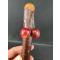Crayon et petit couteau dans un tube en bambou orné de 2 cerises