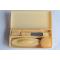 une boite, un étui porte brosse à dent, une lime et un poudrier