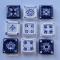 couleurs bleu et blanc, dimensions 72 x 72 mm