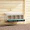 Nichoir à poules4 compartiments, fixation murale, acier galvaniséAméliorez votre expérience d'élevage de volailles avec le nichoir à poulets, offrant aux poules un espace de ponte privé et confortable. Matériau robuste et durable : Fabriqué en acier galvanisé et en plastique polypropylène robuste, ce nichoir est conçu pour durer, offrant des performances durables et une protection à vos poules contre les conditions extérieures difficiles. Collecte des oeufs pratique : Le couvercle facile à soulever et la conception déroulante permettent une collecte des oeufs sans effort tout en gardant les poules tranquilles. Sa conception bien pensée favorise un environnement calme pour votre troupeau, rendant la collecte des oeufs fluide, sans tracas et facile à entretenir. Conception peu encombrante : la structure murale de ce pondoir à poules permet d'optimiser l'espace dans votre poulailler, permettant à vos poules de se déplacer plus facilement tout en leur offrant un endroit confortable et sécurisé pour pondre leurs oeufs. Ventilation bien pensée : le pondoir est conçu avec des bouches d'aération et une façade ouverte pour assurer une circulation d'air optimale, maintenant un environnement sec, sans odeur et confortable pour vos poules tout en empêchant l'accumulation d'humidité et d'odeurs. Facile à installer : le pondoir est facile à installer, car il comprend tous les accessoires d'installation nécessaires. Il peut être monté sur des surfaces telles que des murs en béton, des murs en briques et des plaques de plâtre. Suivez les instructions fournies pour un processus d'installation simple. Bon à savoir : Pour éviter les rayures, il est recommandé de porter des gants lors de l'installation.