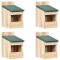 Nichoirs 4 pcs 12x16x20 cm Bois de sapinCes nichoirs en bois sont spécialement conçus et offrent un abri à vos amis à plumes dans votre jardin et sur votre terrasse. Le nichoir pour oiseaux est fabriqué à la main à partir de bois de sapin massif, ce qui le rend durable et adapté à un usage extérieur. Cette cage à oiseaux est dotée d'un toit vert et d'un logement en bois naturel. C'est aussi un ornement parfait et un nid d'oiseaux. La conception en demi-boîte vous permet d'inspecter et de nettoyer le nid facilement. Avec les trous pré-percés au dessus, la volière en bois peut être facilement accrochée dans votre jardin !