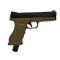 GS50 Bi-Color — version spéciale défense avec culasse noire et carcasse tan/coyote. Ergonomie optimisée, rail Picatinny pour accessoires et construction renforcée pour un usage intensif. Vendu seul ou en pack prêt à l’emploi.
