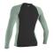 Ce t-shirt UV Premium à manches longues Skins par O'Neill est un t-shirt de sport de grande qualité pour filles, doté d'un facteur de protection UV supérieur à 50 ans. Cela signifie que 98% de tous les rayons UV sont bloqués par le tissu, de sorte que la peau en dessous est bien protégée des dommages du soleil. Le design bicolore bleu foncé et vert menthe confère à cette chemise un joli look athlétique. Même si la coupe haute performance rend cette chemise ajustée, elle est très confortable à porter grâce au tissu extensible dans les 4 sens et aux coutures anti-irritations placées à des endroits stratégiques. Pour les sports nautiques, le maillot peut être attaché à certains maillots de bain par un connecteur boardshort. Bien sûr, cette chemise sèche rapidement et vous gardera à l'aise tout au long de vos activités à la plage! P>