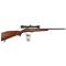 Carabine de fbarication allemande par ANSCHUTZ. Modèle 1450 au calibre 22LR. Arme disposant d'un canon de 50cm à l'état intérieru COMME NEUF. L'état extérieur est bon tout en comportant de nombreuses traces de coups et griffures. Canon non fileté. Canon ne diposant pas d'organes de visées. Boitier-culasse en bon état général. Boitier fraisé en 11mm accueillant une lunette TASCO SILVER ANTLER grossissement 4x32. Carabine approvisionnée par un chargeur amovible acier de capacité 4+1. Crosse en bon état général présentant de nombreuses traces diverses. Plaque de couche polymère d'origine.