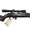 Carabine fabriquée au Philippines par la société SQUIRES BINGHAM, model 1400. Carabien doté d'un canon de 59cm à l'état intèrieur et extèrieur comme neuf. Canon non fileté. Guidon en acier non réglable et hausse en acier réglable en élévation et en dérive. Boitier culasse en bon état général, boitier fraisé en 11mm, il accueil une lunette classic 4x32 en bon état esthétique et optique. Carabine approvisionnée par un chargeur acier de 9 coups. Crosse en bon état général malgrès de nombreuses traces de coups et griffures.