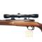 Carabine de fabrication autrichienne par VEOERE modèle 98 au calibre 6.5x55SE. Carabien dotée d'un canon de 61cm à l'état intérieur COMME NEUF. L'état extérieur est également très beau. Canon non fileté. Organes de visée : guidon sous tunnel et hausse acier réglable en élévation/dérive. Ensemble boitier-culasse en trés bon état général. Boitier est équipé d'embases sur lesquelles sont montée une lunette BUSHNELL 4x32 à réticule DUPLEX. L'état esthétique est bon et optique parfait.