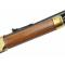 Le boitier, le levier ainsi que l'arrière du boitier et l'arrière du pontet sont en laiton massif dans un état très bon tout en présentant des traces de frottements dûs a des nettoyages. Le boitier possède des garvures reprenant des thèmes de la culture Sioux: Calumet avec bisons et garvures de nature sur le flanc droit, et guerriers Sioux en pleine nature sur le flanc gauche. L'embouchoir de la longuesse et également en laiton et possède le même type de marques que le boitier. Détail esthétique le bouchon est également en laiton. L'anneau de maintien tube magasin-canon est en très bon état et ne possède pas de traces de démontage. L'arme sera livrée avec le morceau de cuir en édition limité qui était fournie avec la carabine lors de sa sortie "WINCHESTER SIOUX CARBINE MODEL 94/30-30WIN."