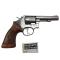 Revolver de fabrication américaine par la maison Smith&Wesson modèle 64 Inox. Le modèle 64 a été conçu en 1970 suite à la commande massive de la police de New York qui souhaitait un revolver pouvant supporter un encrassement majeur et des conditions météo très humides. Le modèle 64 est identique au modèle 10 possédant une finition en acier Inox.