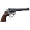 Revolver de fabrication Brésilienne par TAURUS. Modèle 96 au calibre 22LR. Arme disposant d'un canon de 155mm à l'état intérieur très bon. Organes de visées : guidon acier fixe et hasuse réglable élévation/dérive. Revolver double action disposant d'un barillet de capacité 6 coups. Aspect global trés bon avec de légères traces éparses de manipulations. Plaquettes bois d'origine en trés bon état. L'arme est tout à fait fonctionnelle. Or, les douilles sont dures à extraire du barillet. ARME VENDUE EN L'ETAT.