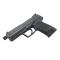 Détente type combat. Pistolet fonctionnant en double action uniquement (comme un Glock par exemple). Approvisionné par chargeur 15 cartouches. Livré avec 2 chargeurs (1 sur l'arme + 1 en valise), un cache-filet et un loader.