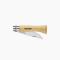 Le hêtre est le bois le plus utilisé pour la fabrication des manches Opinel. Issu d'exploitations françaises, il est dur, résistant et facile à travailler. D'un aspect homogène, sa couleur claire varie du jaune au rosé. Il est reconnaissable par la présence de nombreux petits traits sombres. Le manche est verni pour être mieux protégé contre l'humidité et les salissures.