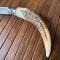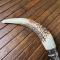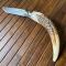 Manche pleine corne bois de Cerf , cran de sûreté rotatif il y a une marque dessus , lame 8,3 cm .