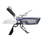 Il contient : - 1 lame de couteau Wharncliffe - 1 jeu de 4 clés 6 pans pour les petites vis que l'on retrouve sur un laser ou une détente - 1 chasse-goupille - 1 mini marteau intégré dans l'extrémité du manche pour chasser les goupilles récalcitrantes - 1 clip de poche en acier inoxydable - 1 décapsuleur - 1 lime à métaux équipée au bout d"un grattoir plat pour extraire les résidus de carbone - 1 clé pour dévisser les écrous avec 4 tailles différentes - 1 pick pour le nettoyage dans les zones difficles d'accès