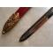 Poignée, garde et ferrures en laiton richement décorées de symbole Templiers. Lame inox.