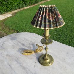 VINTAGE - Lampe à pétrole ancienne, en opaline de foire de couleur bleu (XXè)