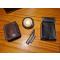 1 cendrier de voyage, en métal jaune, de forme ronde (diamètre 6cm, hauteur 2cm), comportant une ancre de marine sur le couvercle.