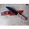 Longueur totale: 31,12 cm Longueur de lame: 17,78 cm Matériau de la lame: Acier 1095 carbone Fourreau cuir Manche bois laminé