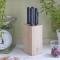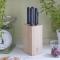 Réalisé en bois de hêtre brut, le bloc rend hommage au matériau emblématique des manches des couteaux Opinel.