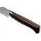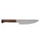 Le manche de ce couteau de cuisine est en hêtre stabilisé. La stabilisation consiste à apporter de la résine dans le bois sous pression à haute température. Une fois stabilisé le bois travaille' moins lorsqu'il est exposé à la chaleur et à l'humidité. De plus, cela permet de le colorer. Opinel a choisi une belle teinte brun foncé qui donne au couteau un aspect luxueux.