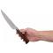 La lames est forgée d'une pièce d'acier inoxydable X50CrMoV15 qui se prolonge sous tout le manche. Donnant au couteau un équilibre parfait. Ce type d'acier résiste à la rouille, il est résistant et suffisamment dur pour trancher et éplucher les fruits, légumes et pommes de terre. C'est pourquoi il est fréquemment choisi pour la fabrication des couteaux européens.