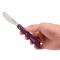 La lame en acier inoxydable mesure 7cm, elle n'est pas tranchante. Un enfant peut donc l'utiliser sans danger. La lame est fixée solidement au manche par deux rivets. Selon le fabricant, ce couteau à beurre peut passer au lave-vaisselle. Cependant nous le déconseillons vivement car la chaleur et l'agressivité des détergents altèrent la durée de vie des couteaux
