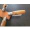 -Travail artisanal pensé dans les moindres détails, Vous observerez sur chacune de mes pièces, Qu'un arc de cercle est présent dans le manche, Celui-ci n'est pas du au hasard il est présent pour un facilité la prise de la larme, Et egalement faire ressortir le logo de la marque.