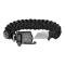 Le bracelet de survie tout-en-un Paraspark(TM) de Outdoor Edge est doté d'une lame tranchante ainsi que d'une boussole. La boucle contient un sifflet de 110 décibels et une tige de ferrocérium. Le bracelet est noué à la main avec de la paracord sept brins en nylon noir réfléchissant, plus un brin enduit de cire et une ligne de pêche.