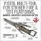 Monter, démonter et ajuster. La liste est longue avec toutes les possibilités qu'offre l'outil multifonction PISTOL TOOL a chaque propriètaire de pistolets type striker ou encore plateformes 1911 et revolvers. Très compact et transportable sur les terrains, il se range facilement dans un porte chargeur. Il contient : - 1 lame 3'' Tanto avec un revêtment titane - 1 receveur fileté en 8/32'' pour acceuillir la majorite des tiges de nettoyage, brosses, cables, écouvillons ou autres outils - 1 chasse-goupille détachable - 1 clé pour la bague des canons 1911 Government & Officer - 4 clés six pans en acier protanium notamment pour l'ajustement d'un laser - 6 embouts (torx, cruciforme ou plat) rangés dans le manche - 1 tige de 6,3cm (2,5'') pour l'uilisation des différents embouts - 1 mini marteau intégré dans l'extrémité pour chasser les goupilles récalcitrantes - 1 pick / grattoir en acier non trempé pour éviter d'edommager les armes à l'utilisation - 1 lime à métaux