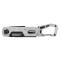 Le manche en acier, avec sa finition noir et gris, offre une prise en main confortable et élégante. Le mousqueton intégré facilite le transport de l'outil, permettant de l'accrocher facilement à un sac ou une ceinture.