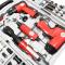Le set comprend également de nombreux accessoires se relatant aux outils pneumatiques, comme les douilles, les raccords de meulage et différentes vannes.