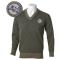 Pull maille jersey, 30 % laine, jauge 7, jauge intérieure et extérieure. Col V et bord côte aux manches et à la taille contrastés, empiècements suédine aux épaules. Produit lavé et assoupli pour un toucher doux. Coloris kaki. Fabrication française.