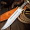 PA3349 Couteau de Chasse Bowie Lame Acier Inox Manche Bois Etui Cuir
