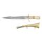 Pack ProHunt Kahn + PIB 22 cm comprenant une dague de chasse à manche en os poli et une trompe en laiton. Un ensemble traditionnel, pratique et soigné pour compléter l'équipement du chasseur. Pack ProHunt Kahn + PIB 22 cm - 1 dague Kahn lame 26 cm acier inoxydable 420 - manche os poli - étui cuir de buffle - 1 trompe PIB 22 cm en laiton. - Catégorie article réglementé : Couteau et matraque catégorie D a