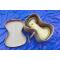 Présentés dans leur boite "papillon", inéressant par le fait qu'elle soit en fin placage de bois clair, bordé de tissu à motifs. Le couvercle est breveté SGDG. Sa sangle de fermeture en cuir est très usée sur deux des perforations, mais bien présente et complète.
