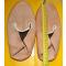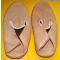 PAIRE DE CHAUSSONS EN CUIR DE L'ARMEE FRANCAISE , POINTURE 41 , FABRICATION JANVIER 1957 , .paire de chaussons, neuve de stock. Elles sont datées du début de l'année 1957, réceptionnées par le Service des fabrications et de l'habillement de la 4ème région militaire, de Bordeaux.