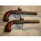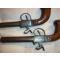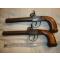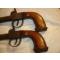 Paire de coup de poing , canon guillochés marqués 1 et 2 , calibre 15mm , crosses en noyer incrustées de fil d'argent , chiens tenant bien aux deux crans marqués 1 et 2 . Faire offre
