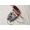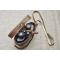 Avec son étui en cuir fauve comportant un seul marquage sur le mécanisme de fermture, petite anse en cuir sur le dessus, la bretelle en cuir est présente.