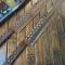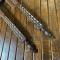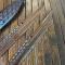 Couteau tout en bois de cèdre sculpté dans un fourreau double également en bois de cèdre sculpté et deux bagues laiton.