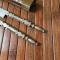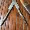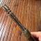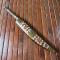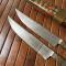 Couteau tout en fer manches sculpté dans un fourreau double en bois de cèdre décorée de fils argenté et trois bagues laiton.