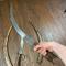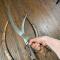 MANCHE BOIS SCULPTÉ INCRUSTÉE DE FILS ARGENTÉ EN FRISE ET CABOCHONS CORAIL lame courbe de bonne taille avec frise gravé , fourreaux bois à frise de fils argenté et cabochons corail petit sur un.